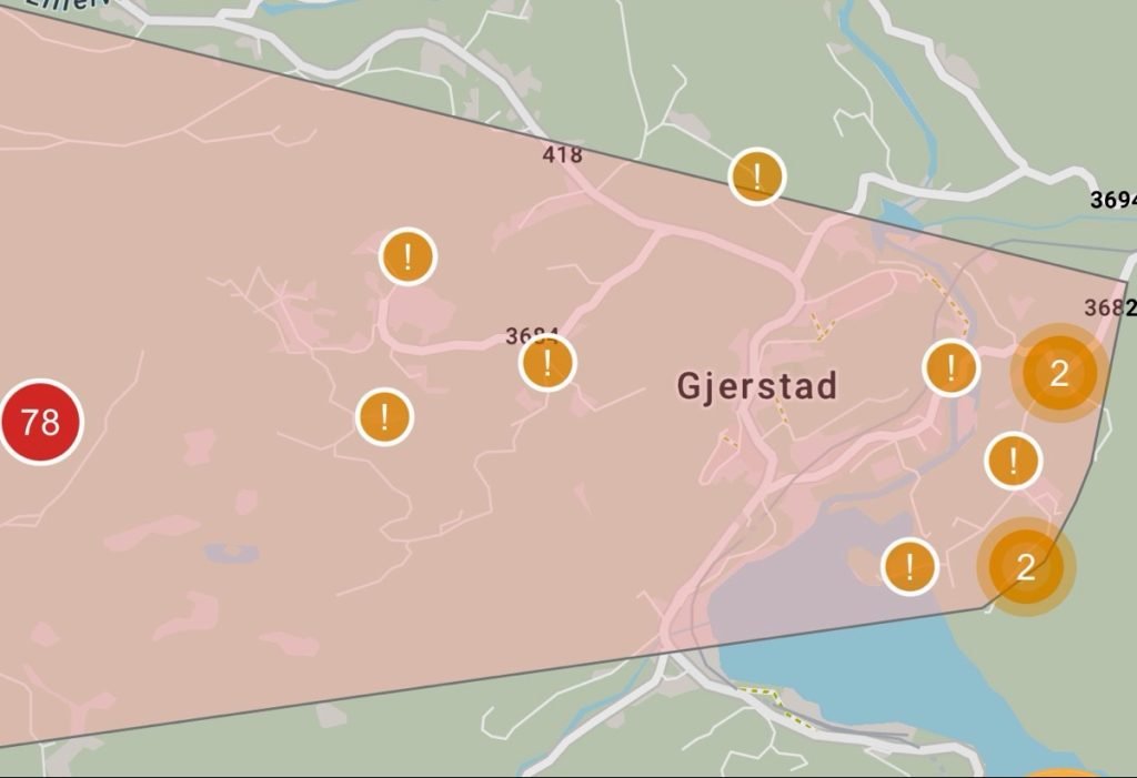 Søndag kveld kl. 19.00 mangler fortsatt 78 husstander strøm i øvre Gjerstad.