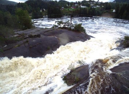 Her kommer en dronefilm fra Prestfoss ved Mølla og Sandåkerhølen, filmet under flommen i Gjerstad i høst.