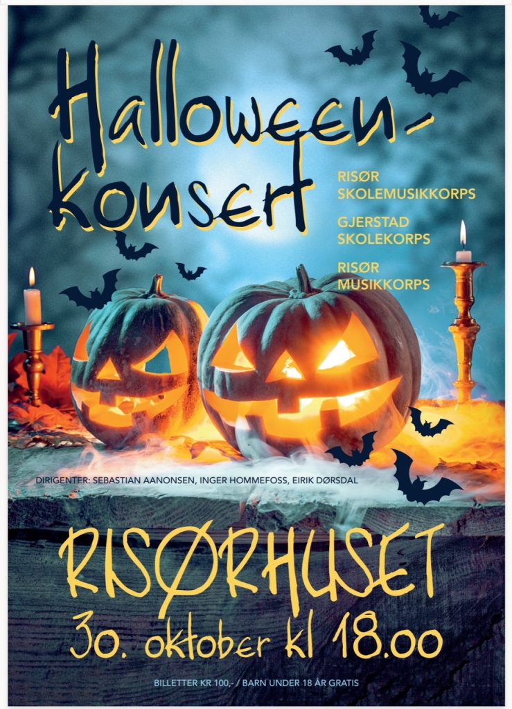 Risør skolemusikkorps, Gjerstad skolekorps og Risør Musikkorps spiller både skummel og snill musikk på sin halloweenkonsert som starter kl. 18.00.