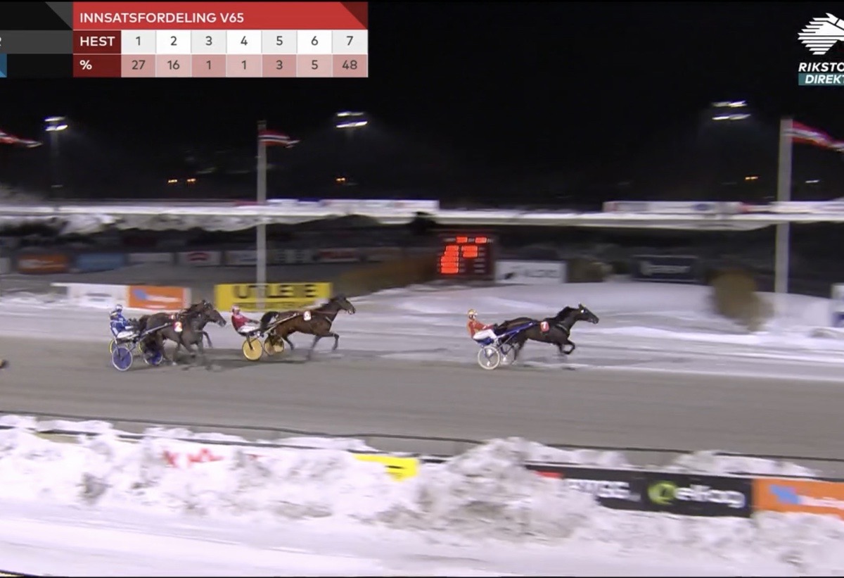 Share Facebook Twitter LinkedIn Pinterest Email Per Vetle Kals tok en ny seier med Lasse B.R. fredag kveld. i V65-1 på Sørlandet Travpark overtok Lasse B.R. teten etter 700 meter. Derfra så han seg ikke tilbake, og vant løpet på enkleste vis. Vi gratulerer!