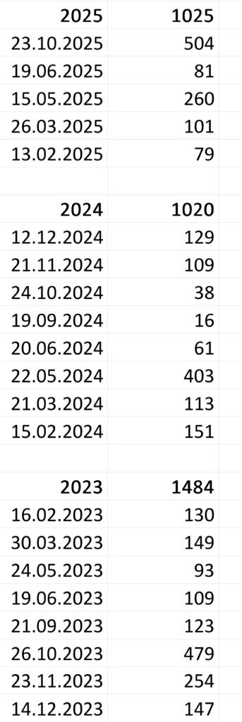 Her er en oversikt over antall seere til de direktesendte kommunestyremøtene. Sendinger sett i opptak senere er ikke med i oversikten.