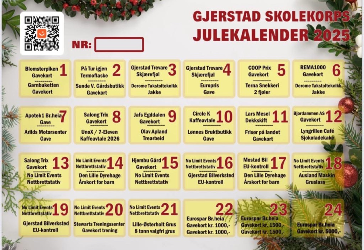 Hvis ikke det heller passer, så kan du bestille på Facebooksiden til Gjerstad skolekorps, vippse penger og få bilde av kalendernr. tilbake.