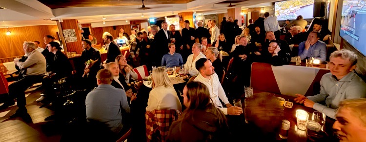 På Sardinfabrikken i Risør var det høye stettglass og fingermat på menyen for mange av dem som har bidratt til at serien har kommet i stand. Her fikk også de fremmøtte se den første episoden på skjermer rundt i lokalet.