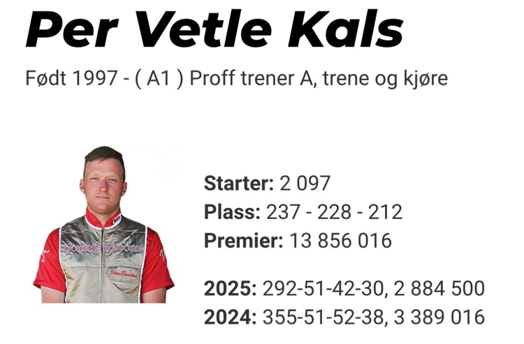 Per Vetle Kals tok fredag kveld årets 51. seier på travbanen og tangerte med dette totalantallet for hele 2024.